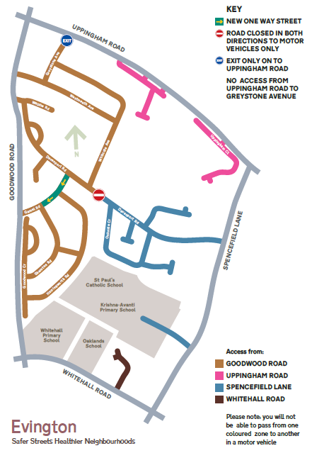 The closures are in place experimentally and if you have any objections about the Experimental Order (Parking and Moving restrictions) being made permanent these should be received in writing referencing (Evington SSHN-2979-P&M) preferably by email: SaferHealthierStreets@leicester.gov.uk by 24 February 2023. In addition, a survey will be sent to local people, once the scheme has bedded in. The survey will give you the opportunity to tell us the difference all the closures have had made to living and travelling within your neighbourhood.